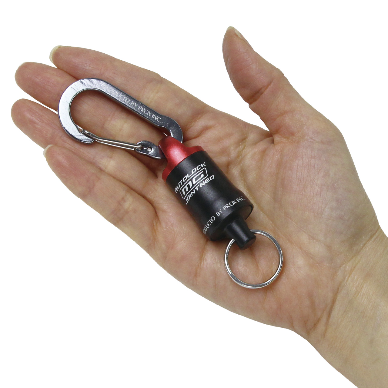 タックルの脱落を防ぐ強力ボールロック機構を採用したマグネットジョイント。装着時はボールロックピンで固定されており、飛んだり跳ねたりした衝撃でも脱落を防止。タックルを外すときはスリーブを引くだけ。装着はマグネットの磁力でオートロック。玉の柄やギャフなどの重量物でもしっかりロック。ネットが岩や枝などに引っかかっても不意の脱落を解消。精密マシンカットに表面硬度を高めるアルマイト処理をした軽量アルミボディ。外観をスリム化して従来品比較約30%軽量。