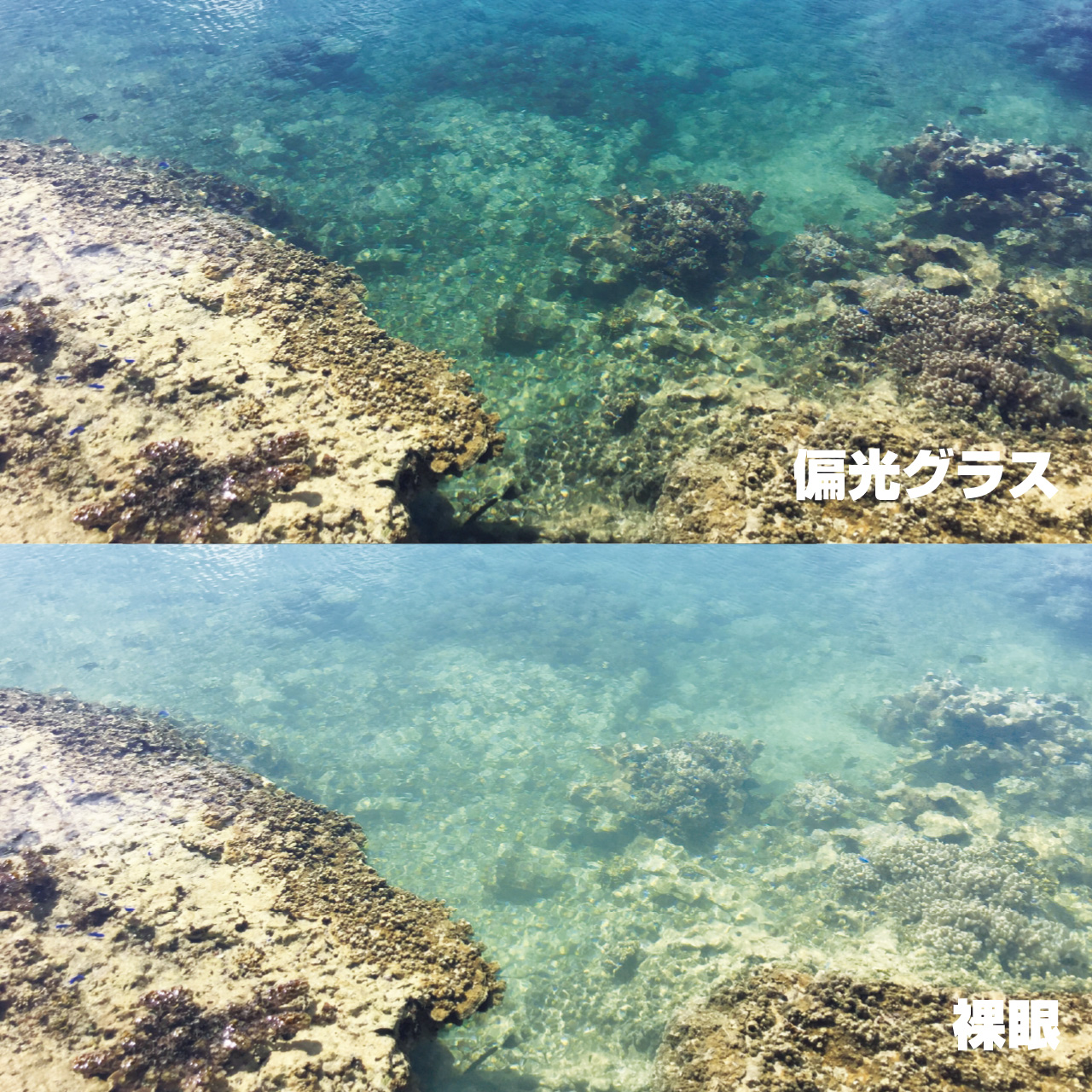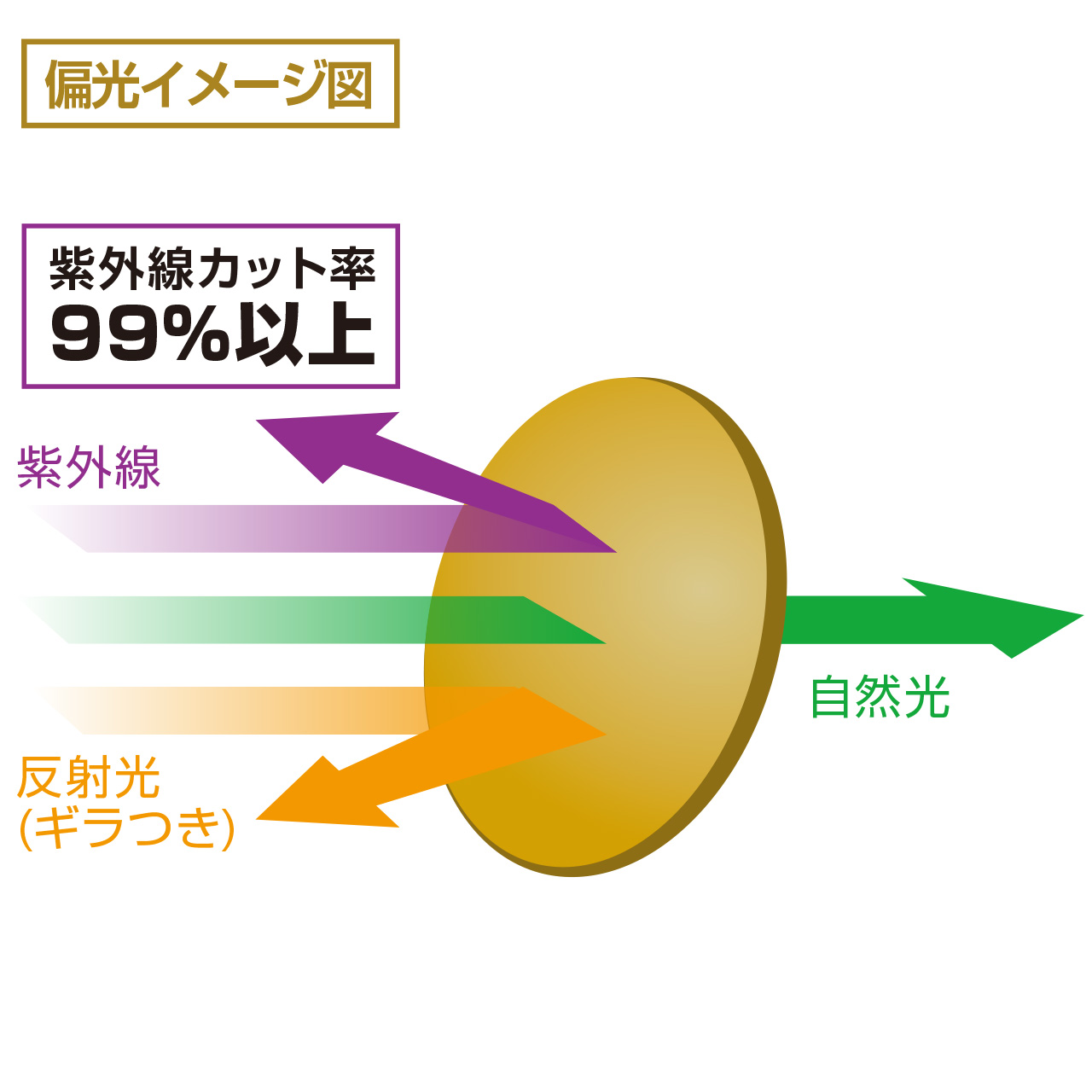 水中が見やすく目の疲れを和らげる偏光グラスを採用。紫外線(UV)カット率99%以上。