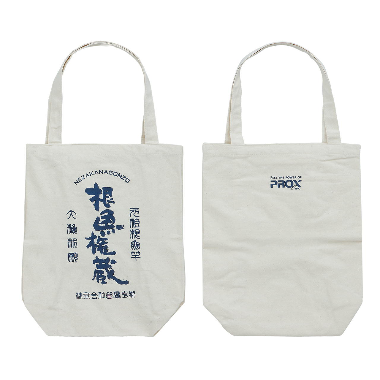 コットンの生成りの風合いを生かしたナチュラルとネイビーの2カラー。ロックフィッシュロッドプランド「根魚権蔵」ロゴをと「Pマーク」ロゴの2デザイン。裏面には「PROX」ロゴをあしらった両面プリント。