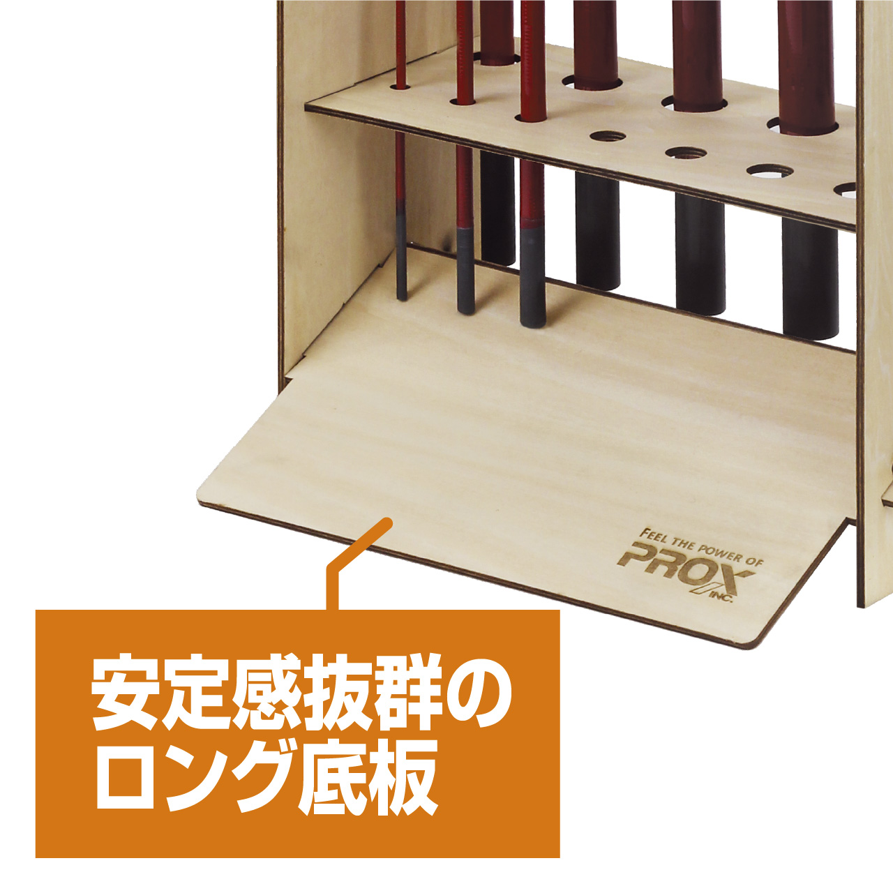 安定感抜群のロング底板を採用。