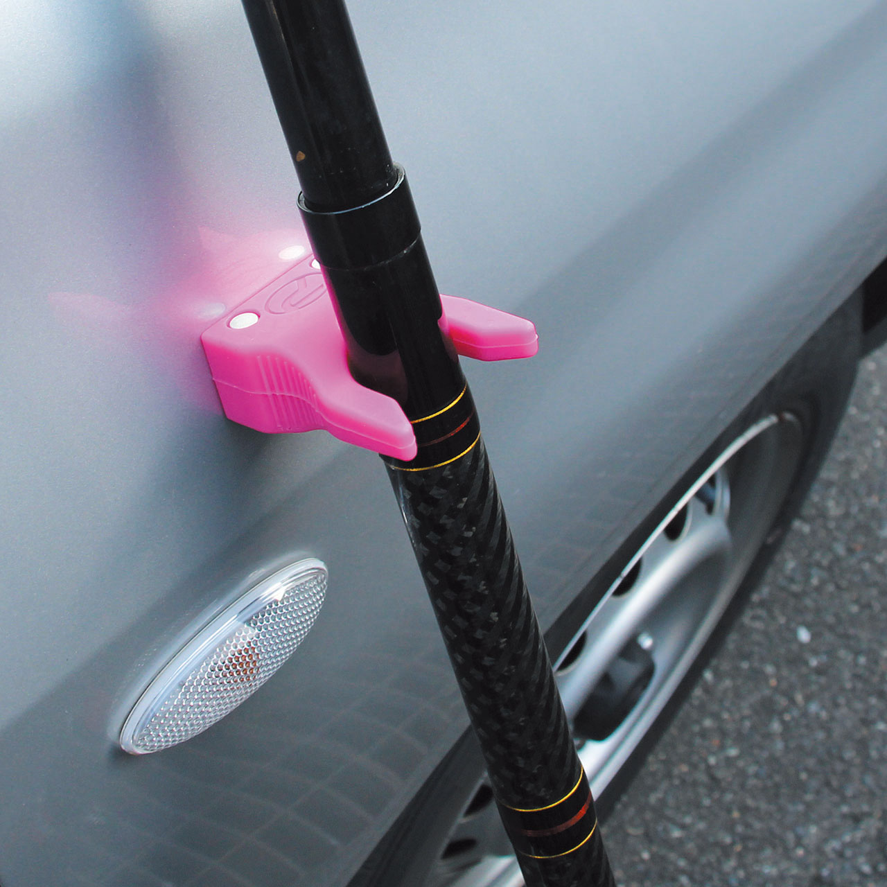 強力なマグネットで取り付けできるコンパクトな竿受。