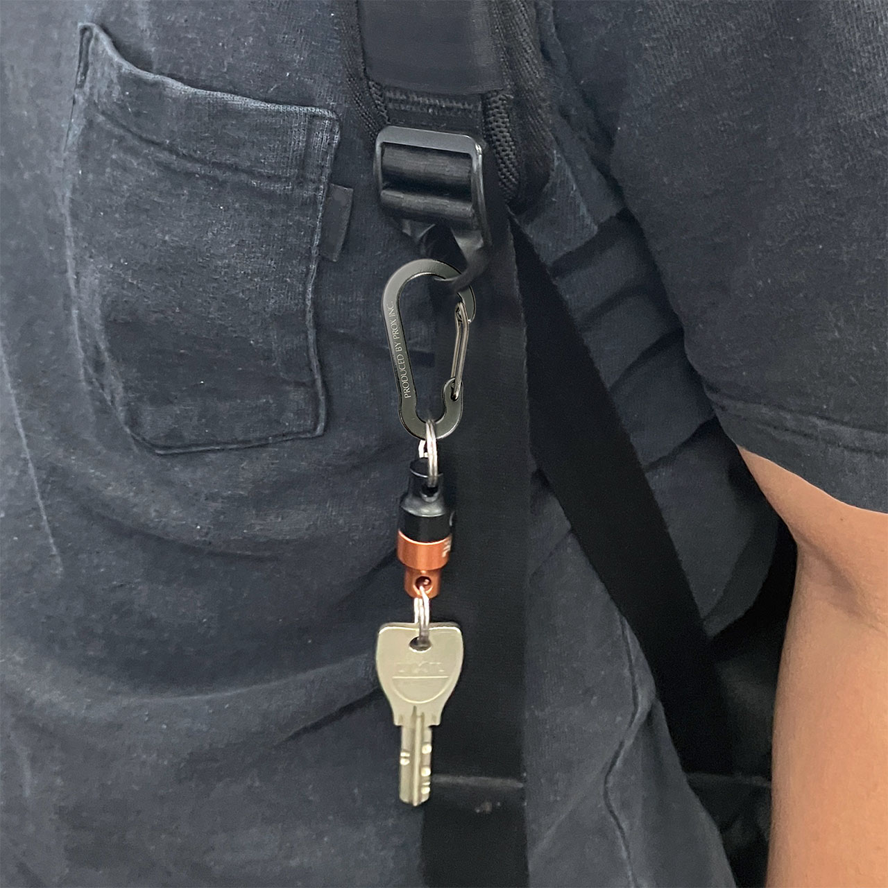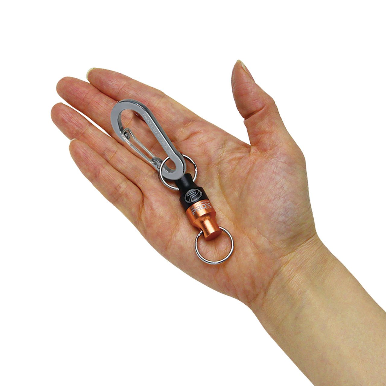 カラビナ付でバッグやフローティングベストなどに簡単取り付け。