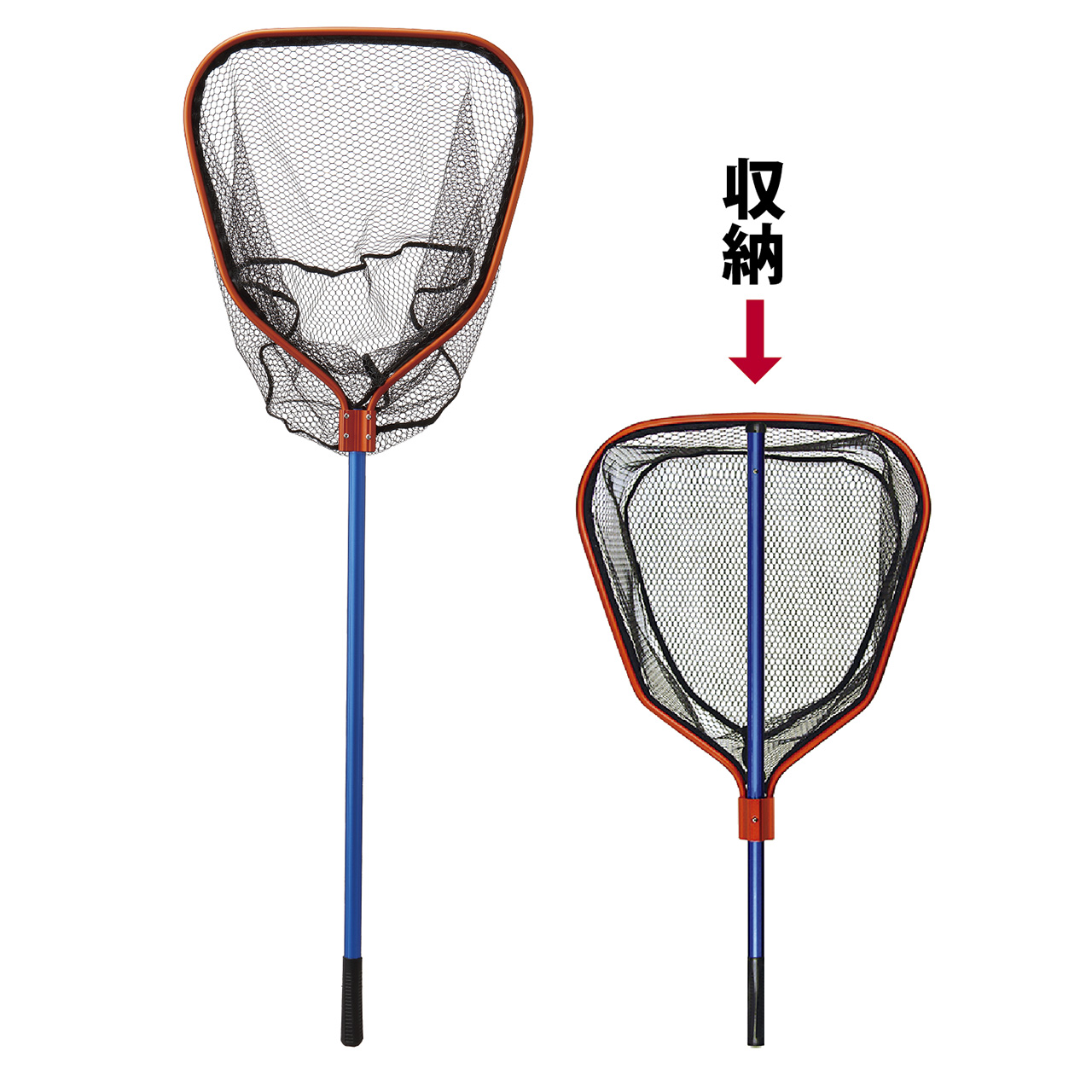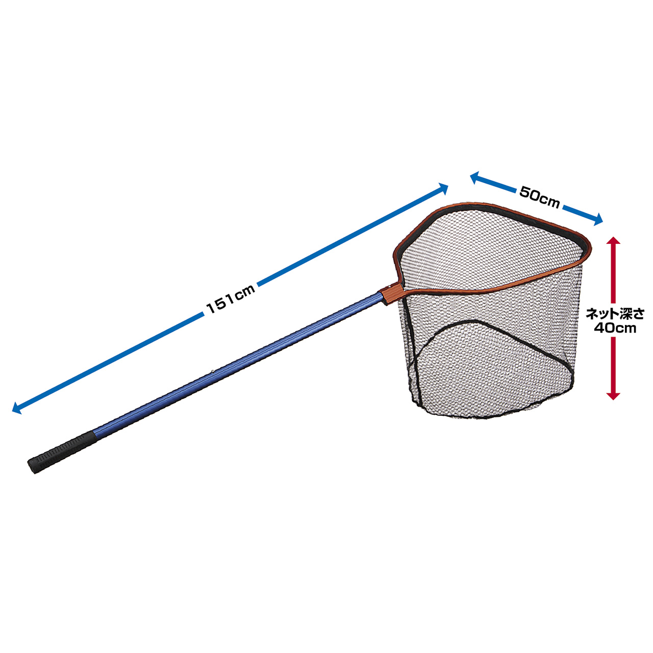 枠サイズは20型(50ⅹ53cm)、使用時全長151cm、ボートゲーム等に最適な取り回しの良いランディングネット。