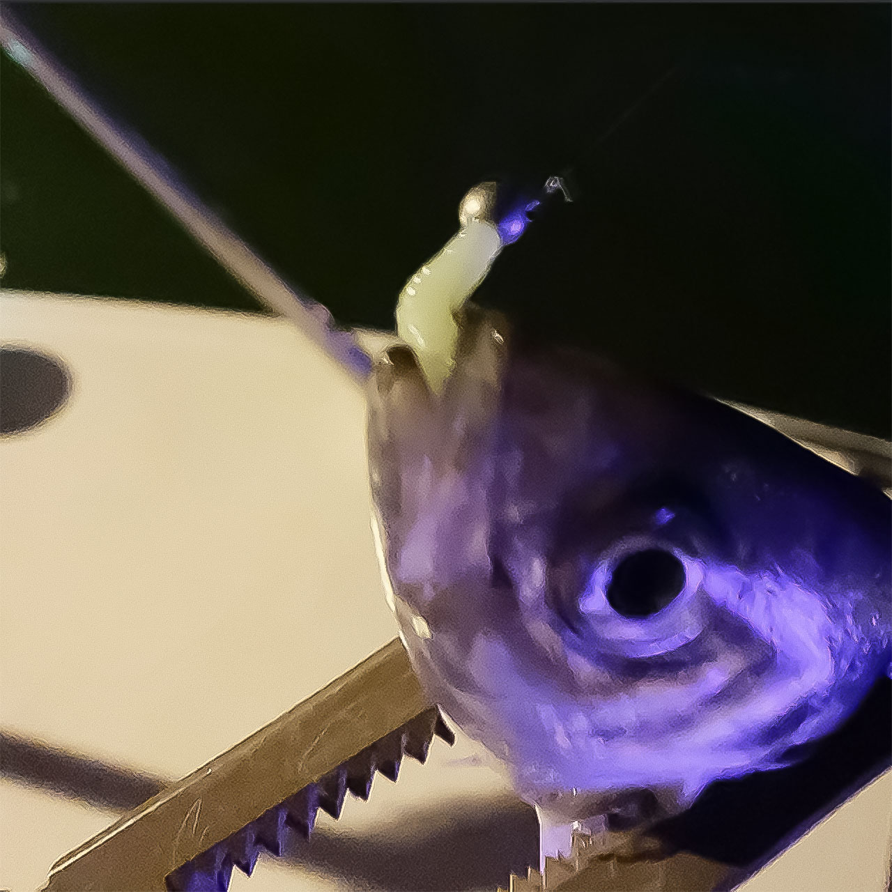 ワームは、ピンテールのフォルムがしなやかな動きで微波動を生み出します。極細テールより、アジの吸い込みを邪魔せずフッキング率アップ。
