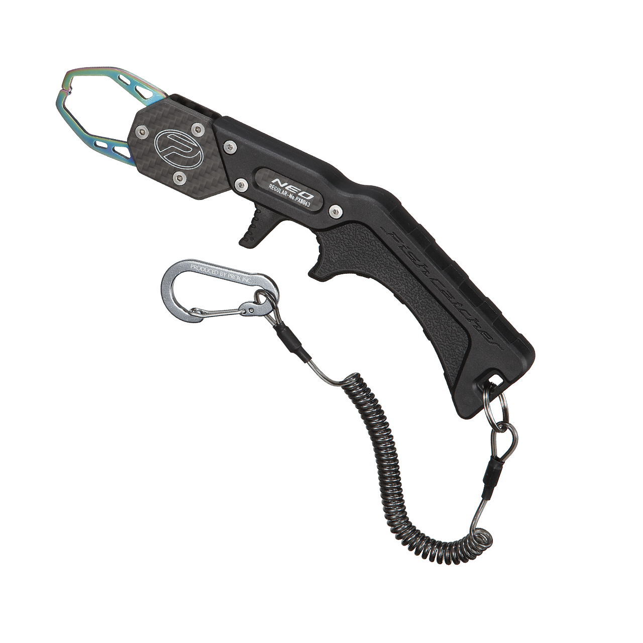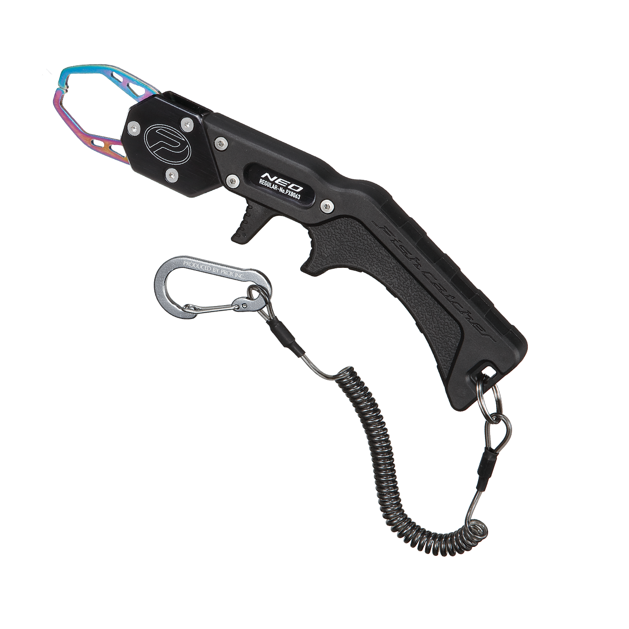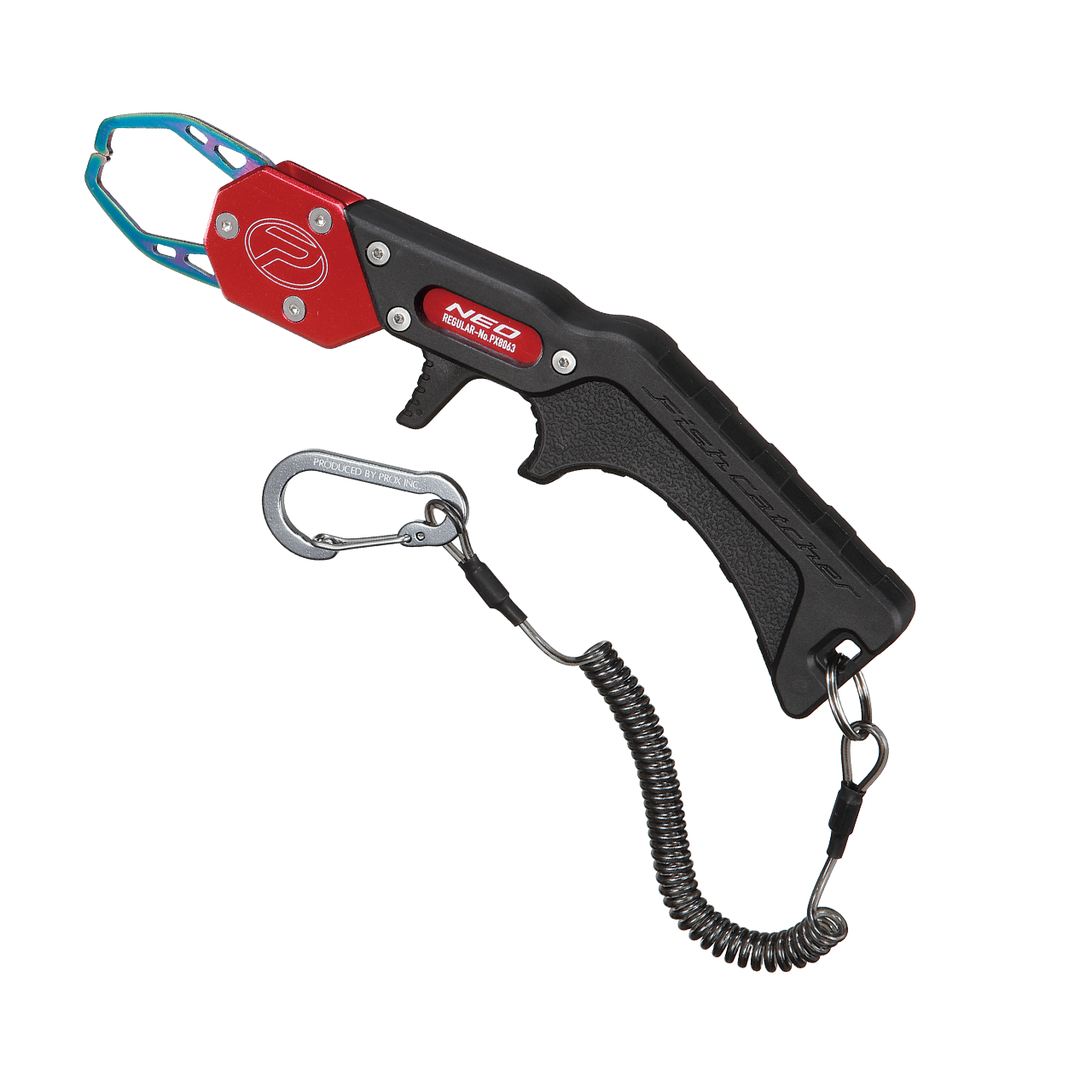 握りやすい独自のベントボディ形状に、獲物のキャッチ後、人差し指を掛けてしっかり握れるフィンガーチャンネル。グリップは魚が暴れても滑りにくいノンスリップ加工を施し獲物をしっかりキャッチします。汎用性の高いレギュラーサイズのフィッシュキャッチャー。